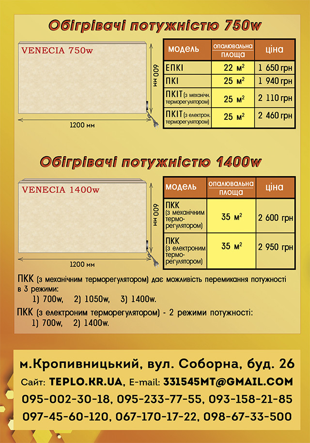 Для тих, хто купуючи нагрівач ТМ Венеція, не планує його монтувати на стіну, а використовувати його як додаткове/локальне нагрівання, наш магазин teplo.kr.ua скористатися ніжками-стійками.